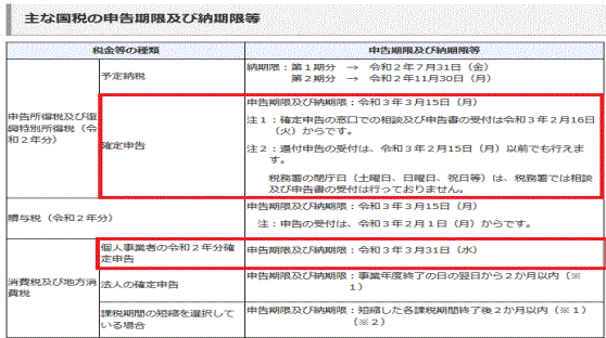 →申告期限(3/15)までの通信日付印(消印)は有効 |