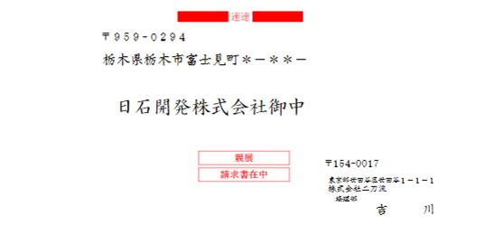 【印刷された封筒イメージ】